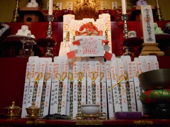 昨年末、皆様方より依頼を頂いた新春札を元旦に本堂にて諸願成就を祈祷し、後日、例年同様に各家々に手渡しにてお授けをし、新年の挨拶を申し上げました。本年も宜しくお願致します。(合掌)